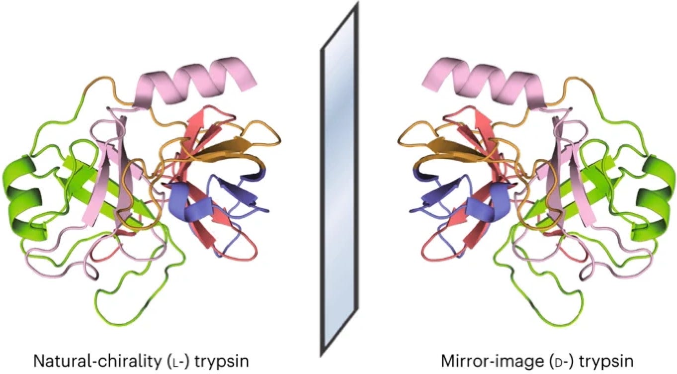 This phenomenon exists in biology and chemistry and is called “chirality.” All molecules—such as DNA, RNA, or proteins—have evolved with one configuration, one chirality. But last week, scientists published a paper and a technical report showing it might be possible to engineer mirror versions of respective molecules.